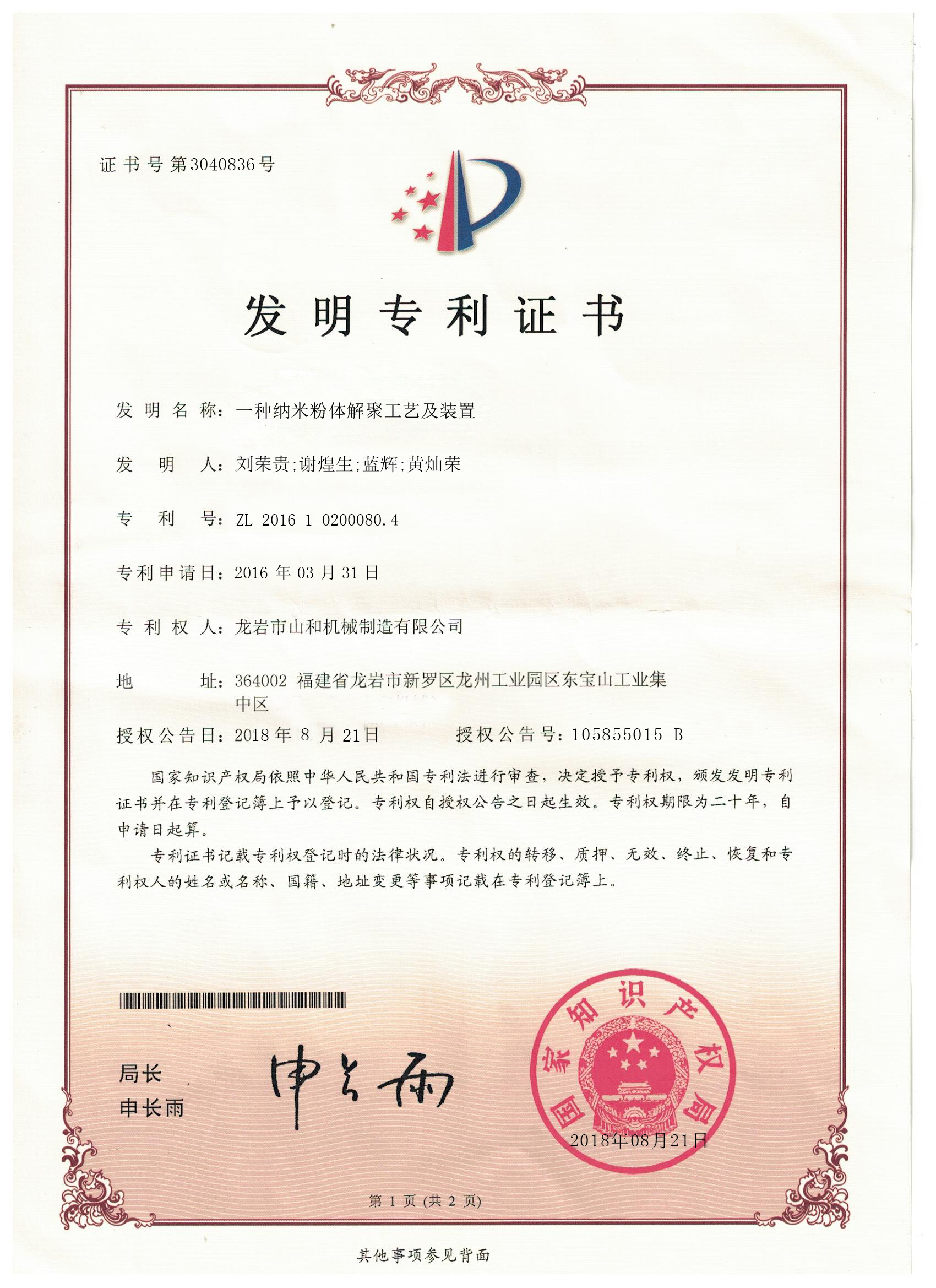 一種納米(mi)粉體解聚工藝(yi)及裝置